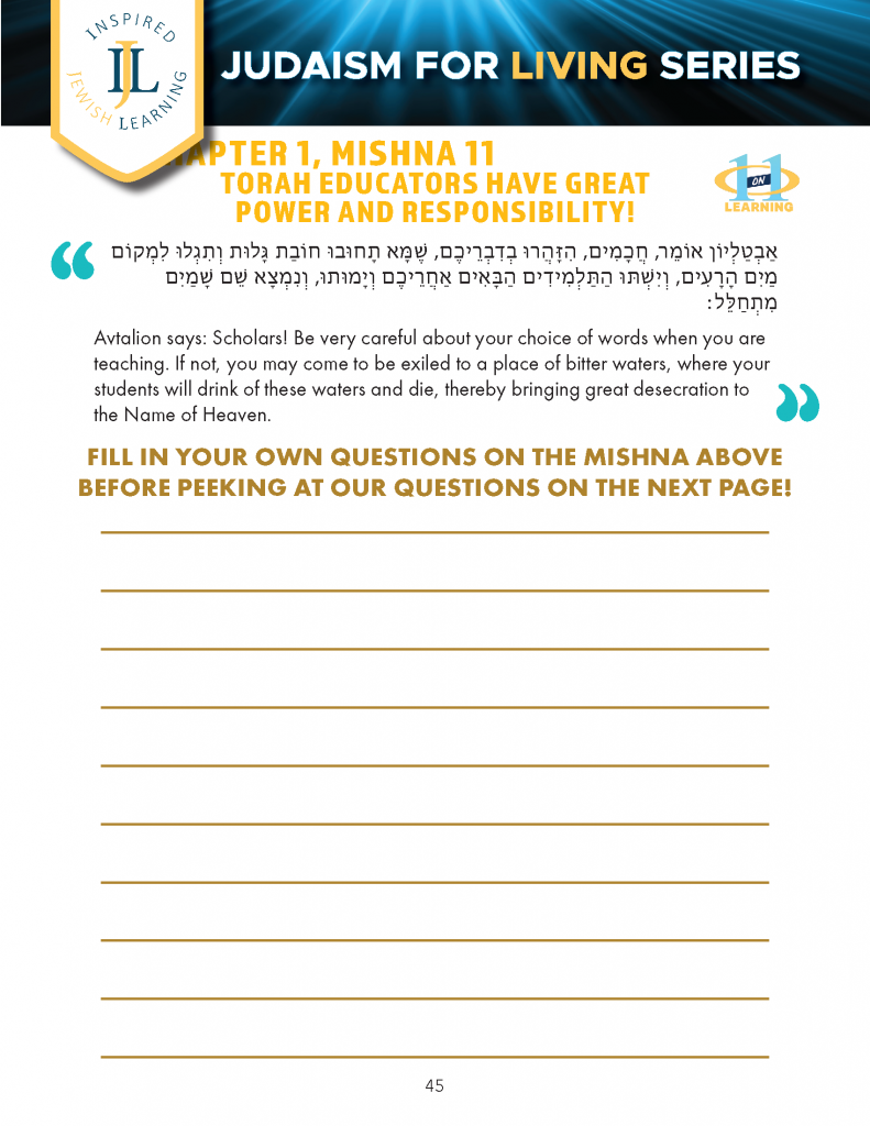 CHAPTER 1, MISHNA 11 – TORAH EDUCATORS HAVE GREAT POWER AND RESPONSIBILITY!