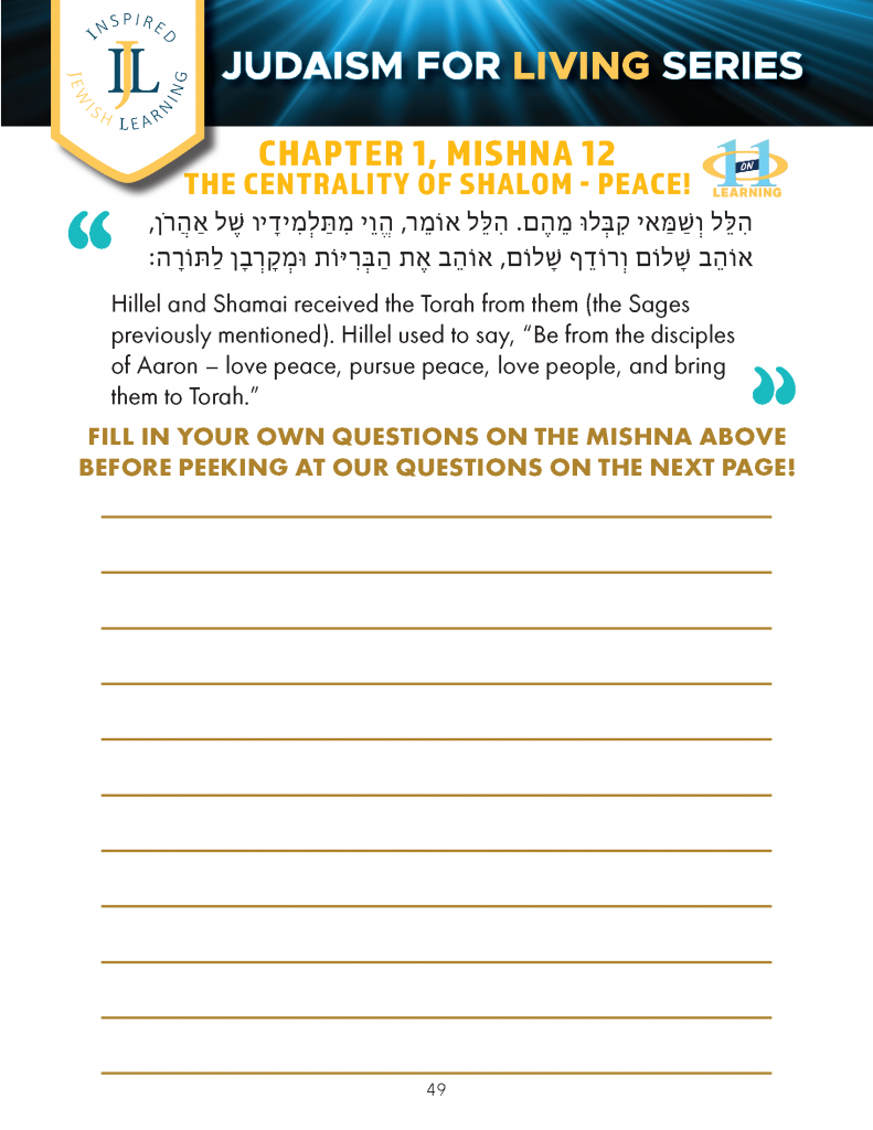 CHAPTER 1, MISHNA 12 – THE CENTRALITY OF SHALOM – PEACE!