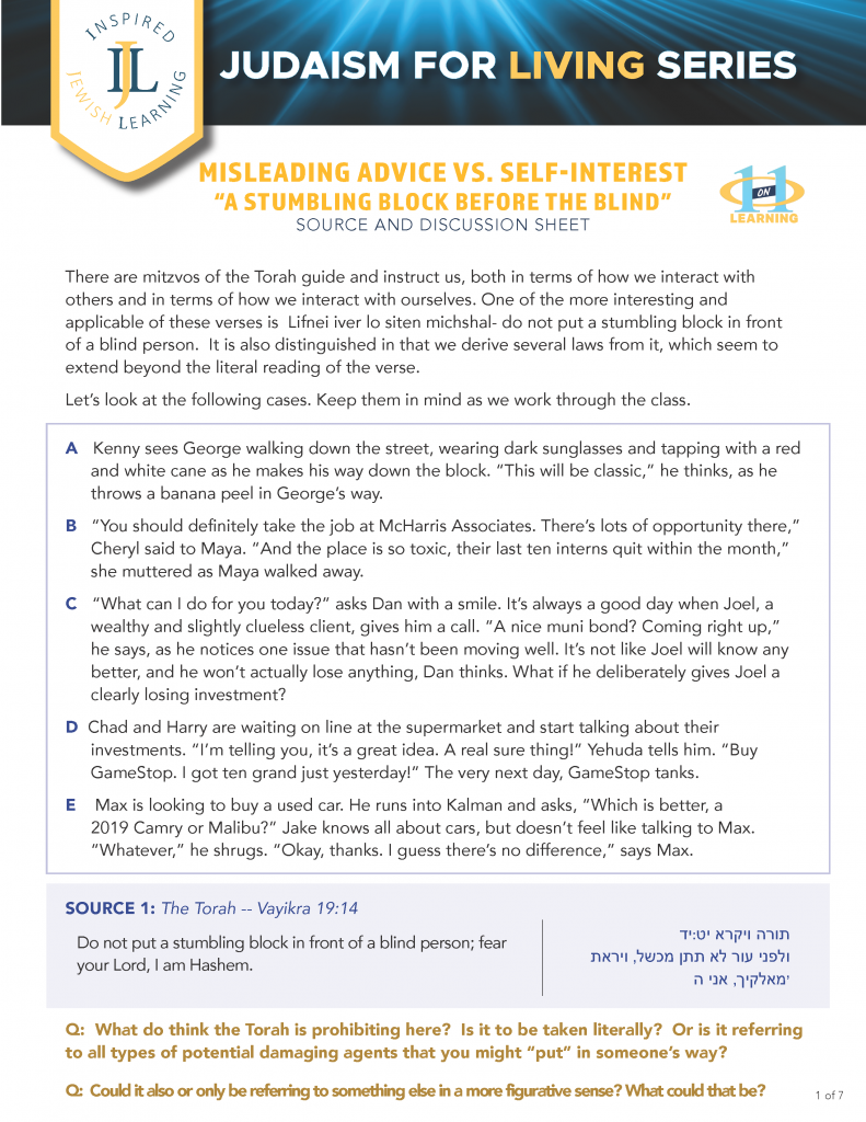 MISLEADING ADVICE VS. SELF-INTEREST – “A STUMBLING BLOCK BEFORE THE BLIND”