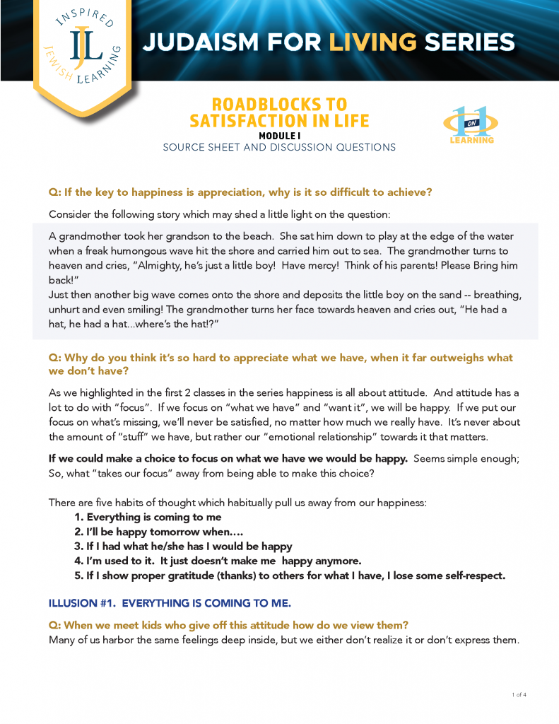 ROADBLOCKS TO SATISFACTION IN LIFE – MODULE II