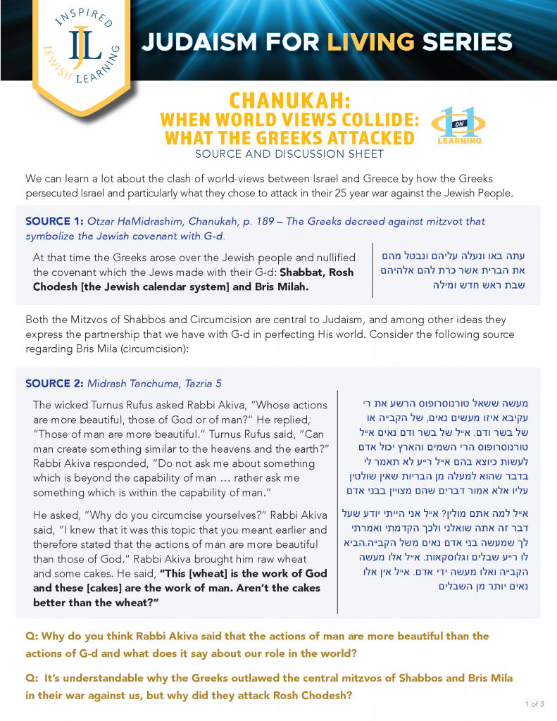 CHANUKAH: WHEN WORLD VIEWS COLLIDE – WHAT THE GREEKS ATTACKED