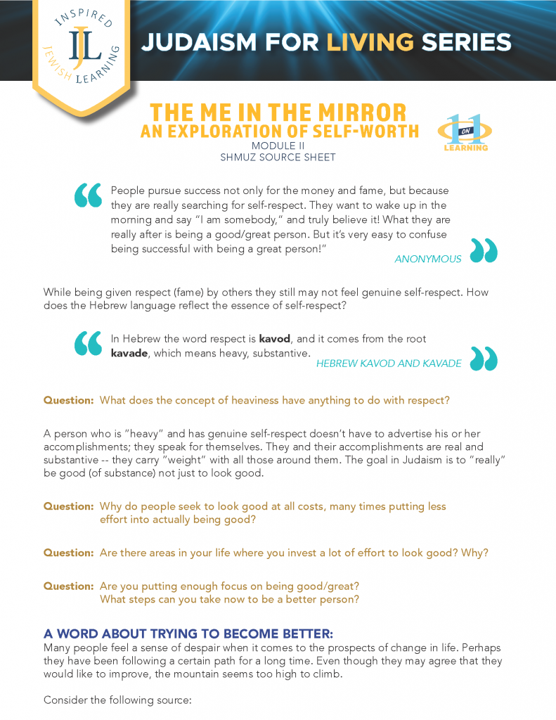THE ME IN THE MIRROR – AN EXPLORATION OF SELF-WORTH – MODULE II – SHMUZ